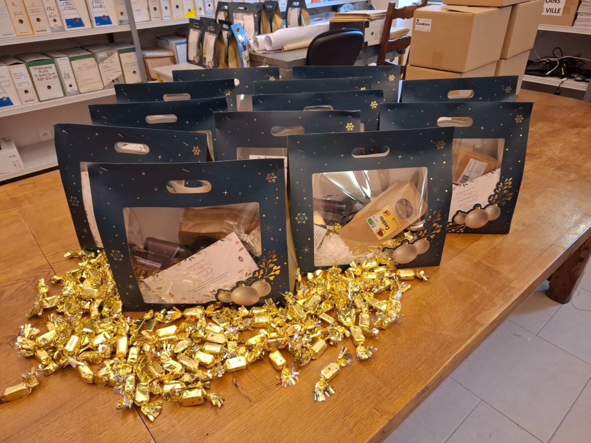 Les 180 colis de Noël ont été confectionnés dans la bonne humeur jeudi 4 décembre 2025 dans l'après-midi par des élus.