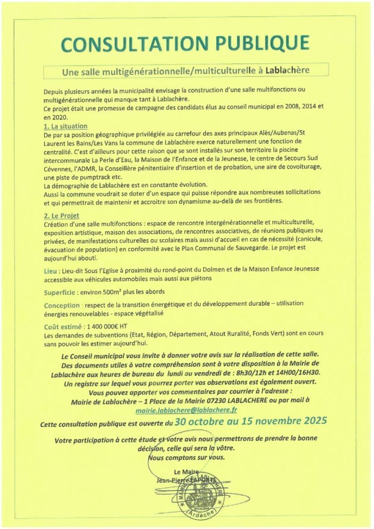 Consultation publique - salle multigénérationnelle