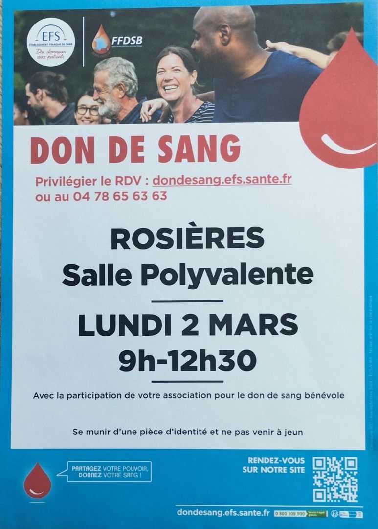 Don du sang à Rosières le 2 mars 2026