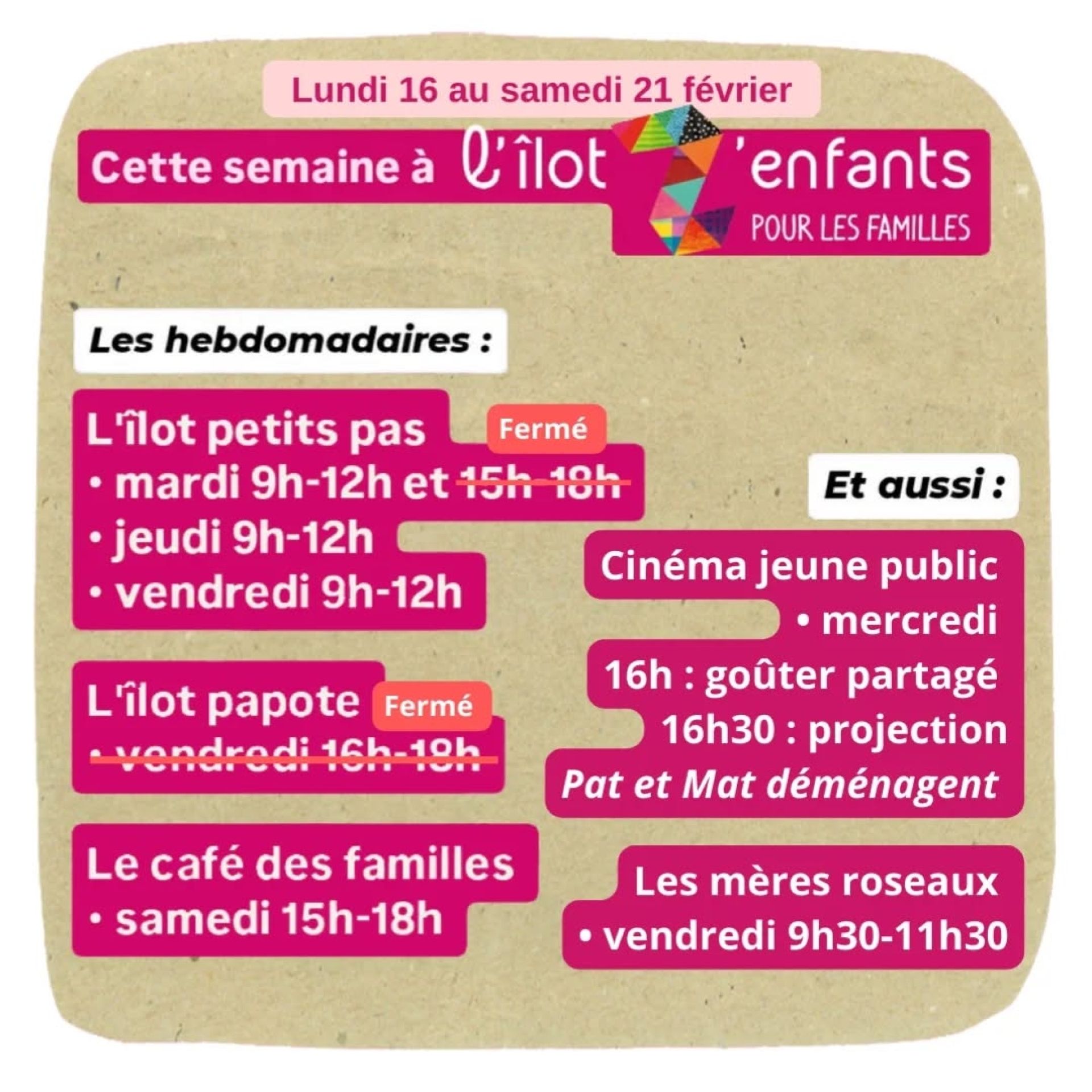Programme de L'Ilot Z'Enfants du 16 au 21/2/2026
